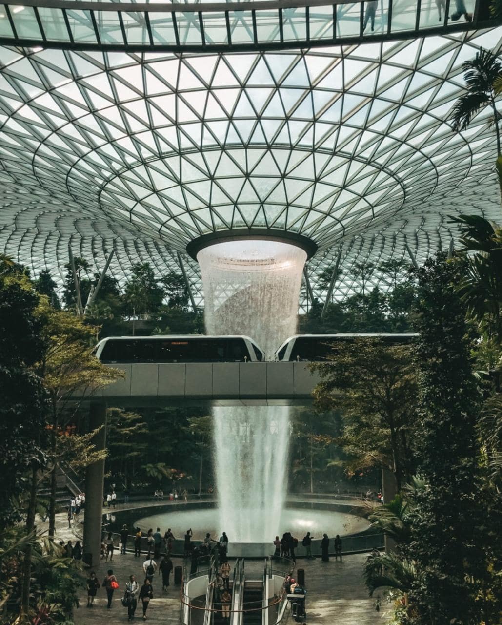 Ну, а на видео — шедевр и символ аэропорта. 40 метровый водопад Rain Vortex — самый высокий в истории искусственный водопад под крышей. Лично я залип в него минут на 30.