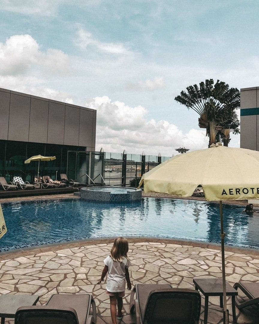 На крыше есть бассейн (еще джакузи и фитнес-центр) с видом на взлетную полосу! Как на счет того, что бы позагорать между рейсами?