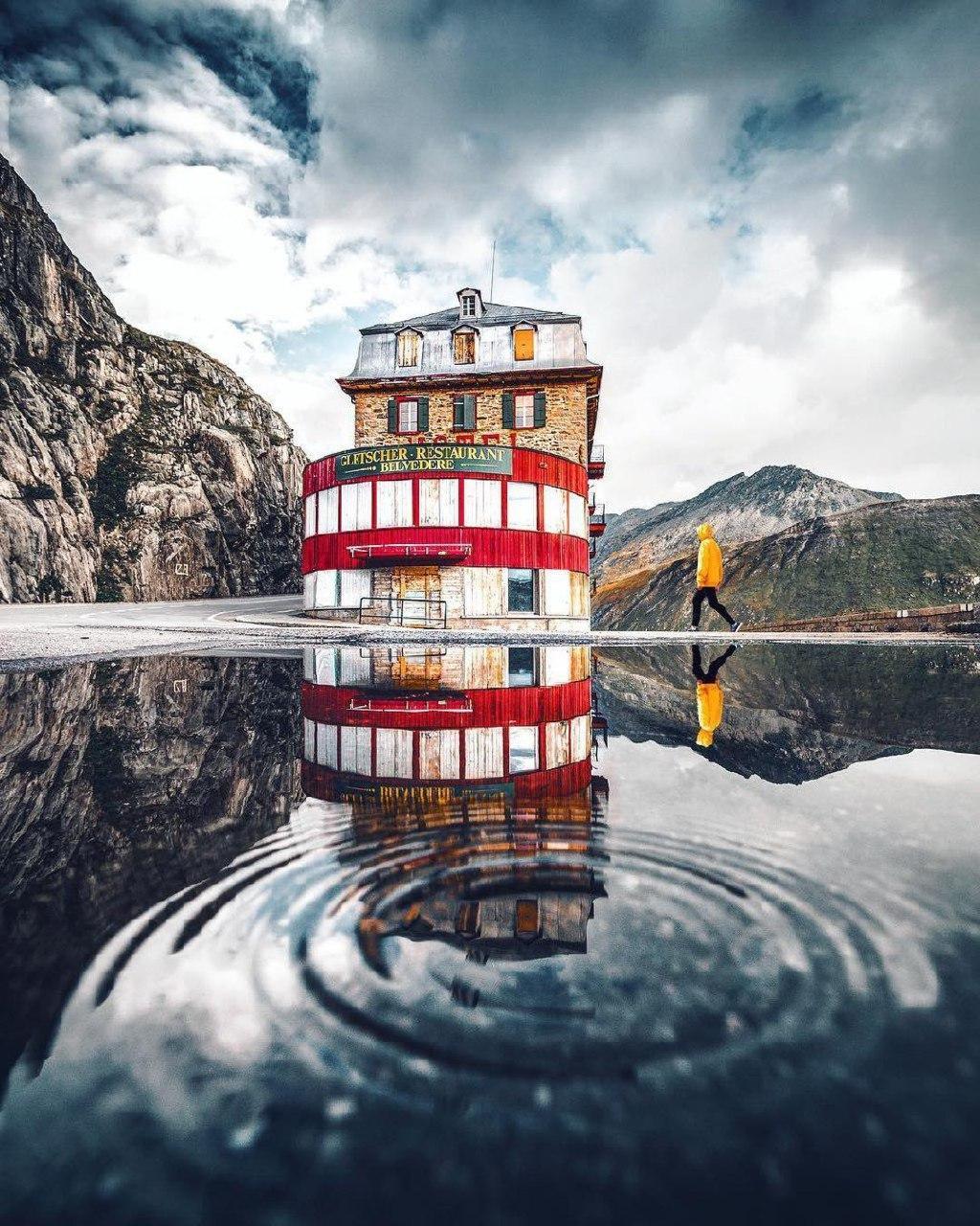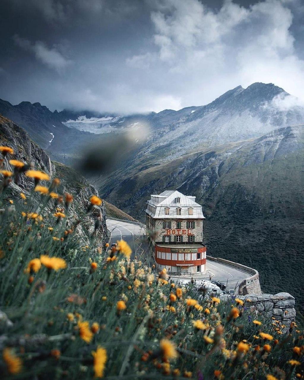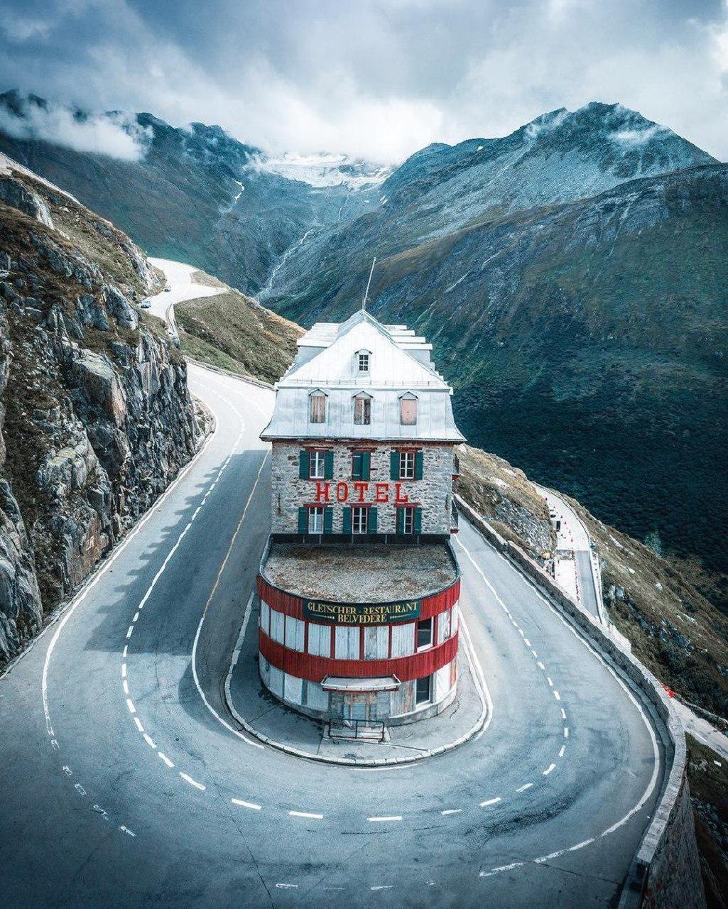 На фото вы видите заброшенный отель Бельведер, построенный аж в 1882 году. Примечательно это место еще и тем, что находится у Ронского ледника из которого начинается река Рона. Фишка ледника - в него можно зайти. Сквозь ледник пробурены тоннели, по которым можно прогуляться.