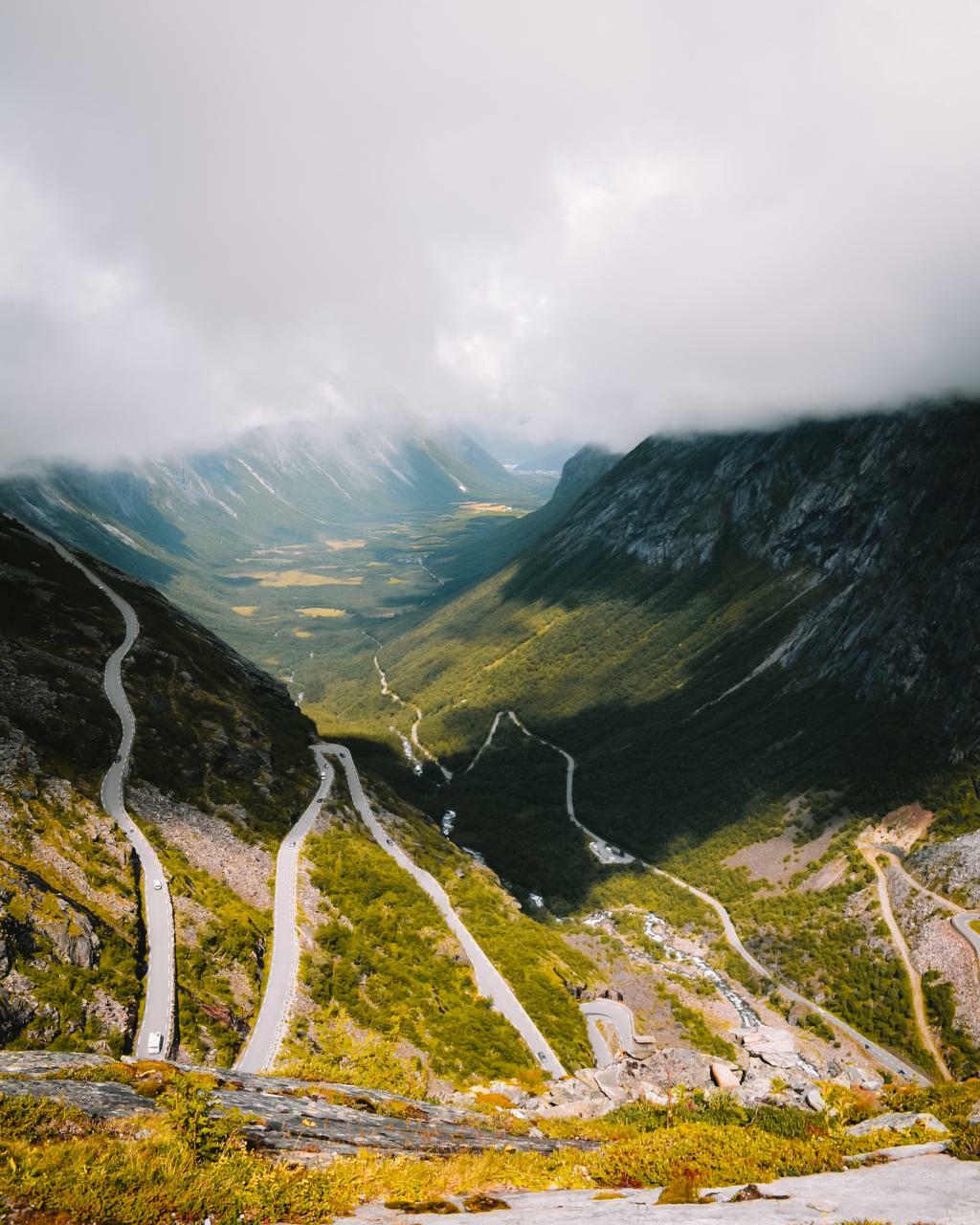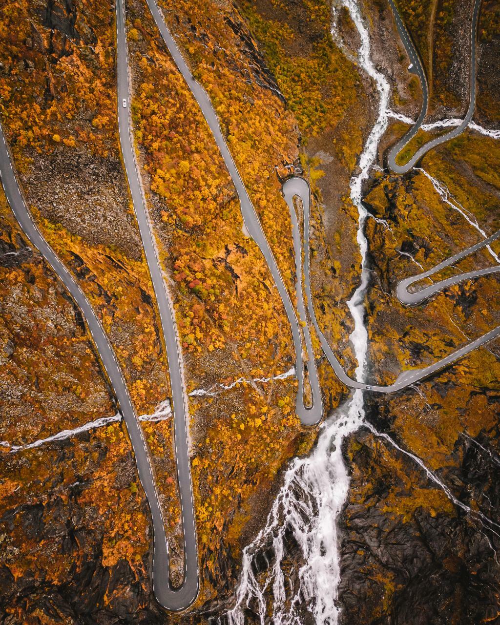 1. Горный серпантин Гейрангер-Тролльстиген — самая знаменитая дорога Норвегии. Уклон дороги 9%, 11 крутых поворотов, многочисленные смотровые площадки и виды на фьорды, водопады. Дорога в длину — 106 км. Самая живописная часть дороги начинается на въезде в горный массив Троллей.