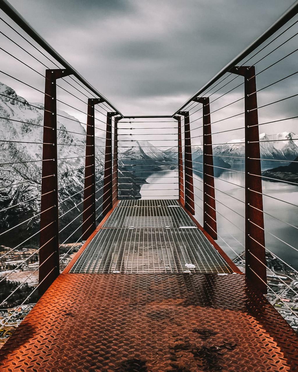 2. Рампестрекен — смотровая площадка в виде моста над скалой, с которой открываются неповторимые виды на фьорд. Вид с неё открывается самый потрясающий, а высота и кажущаяся неустойчивость моста — захватывают дух!