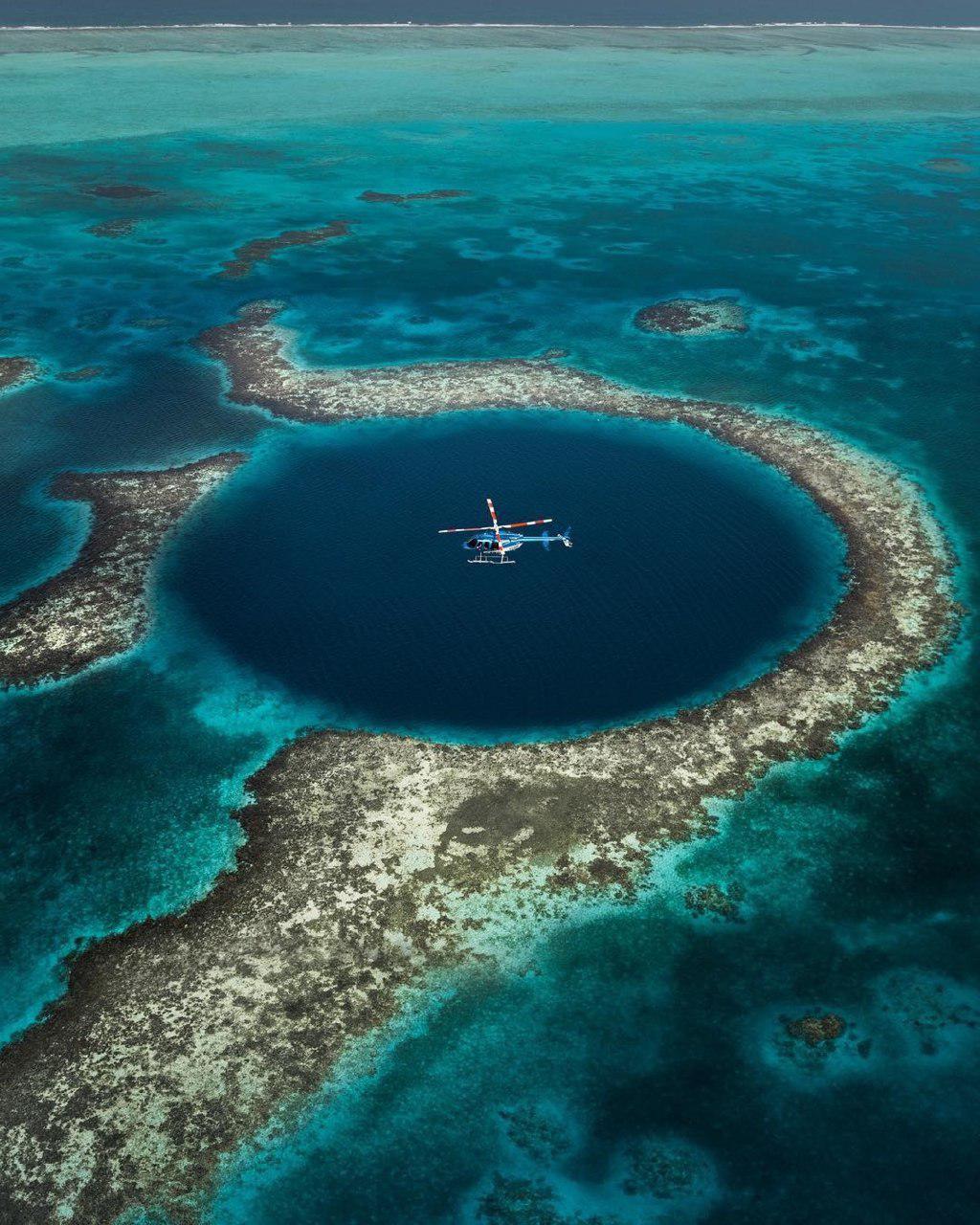 - To see a large blue hole from a bird's eye view. A hole is a round karst funnel with a diameter of about 305 meters, extending to a depth of 120 meters.